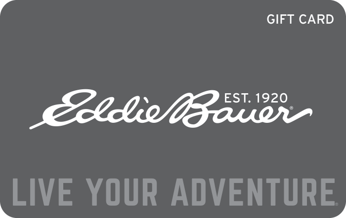 Eddie Bauer | Buy a Gift Card for Eddie Bauer Eddie Bauer | Buy a Gift Card for Eddie Bauer Gift Cards Adventure is the gift that always fits. Make their day with a gift that helps them celebrate their way! E-Gift Cards Send an E-Gift Card with a personalized message via email or text, or print one out to hand deliver. Shop an E-Gift Card Check the balance on your gift card Oh, no!