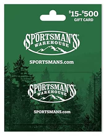 Sportsman's Warehouse Gift Cards - Outdoor Gear & Clothing Sportsman's Warehouse Gift Card. Redeemable at all Sportsman's Warehouse retail store locations & online. No shipping fee on standard ground. No fees or expiration date. Available in any amount from $5 to $2,000 per gift card. Multiple gift cards may be purchased in a single transaction. Sportsman's Warehouse Store Locations Sportsman's Warehouse Store Locations. Sportsman's Warehouse Stores. Premier Outfitters for Outdoor Gear and Clothing: Hunting, Shooting, Fishing, Camping, Cooking and more. The Gunsmith at Sportsman's Warehouse. Gun Repair, Customization Services, Cerakote Ceramic Coating Certified Applicators.