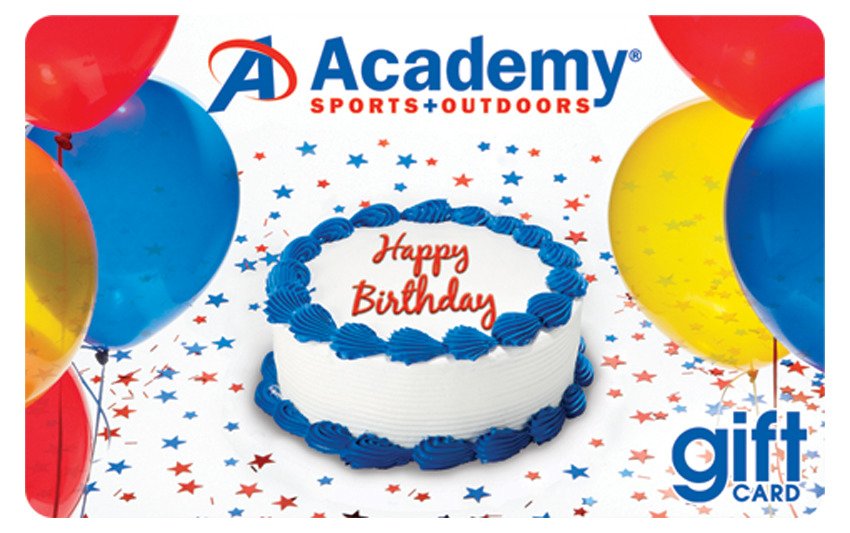 Gift Cards | Academy Sports Gift Cards, Holiday Gift Cards | Academy Happy Birthday Scoreboard Academy Gift Card. eGift Card. 5.0 (29) eGiftCard - Academy Deer with Binoculars. eGift Card. 4.0 (2) eGift Card - Academy Logo - White. 5.0 (18) Fishing Trophies Academy Gift Card.