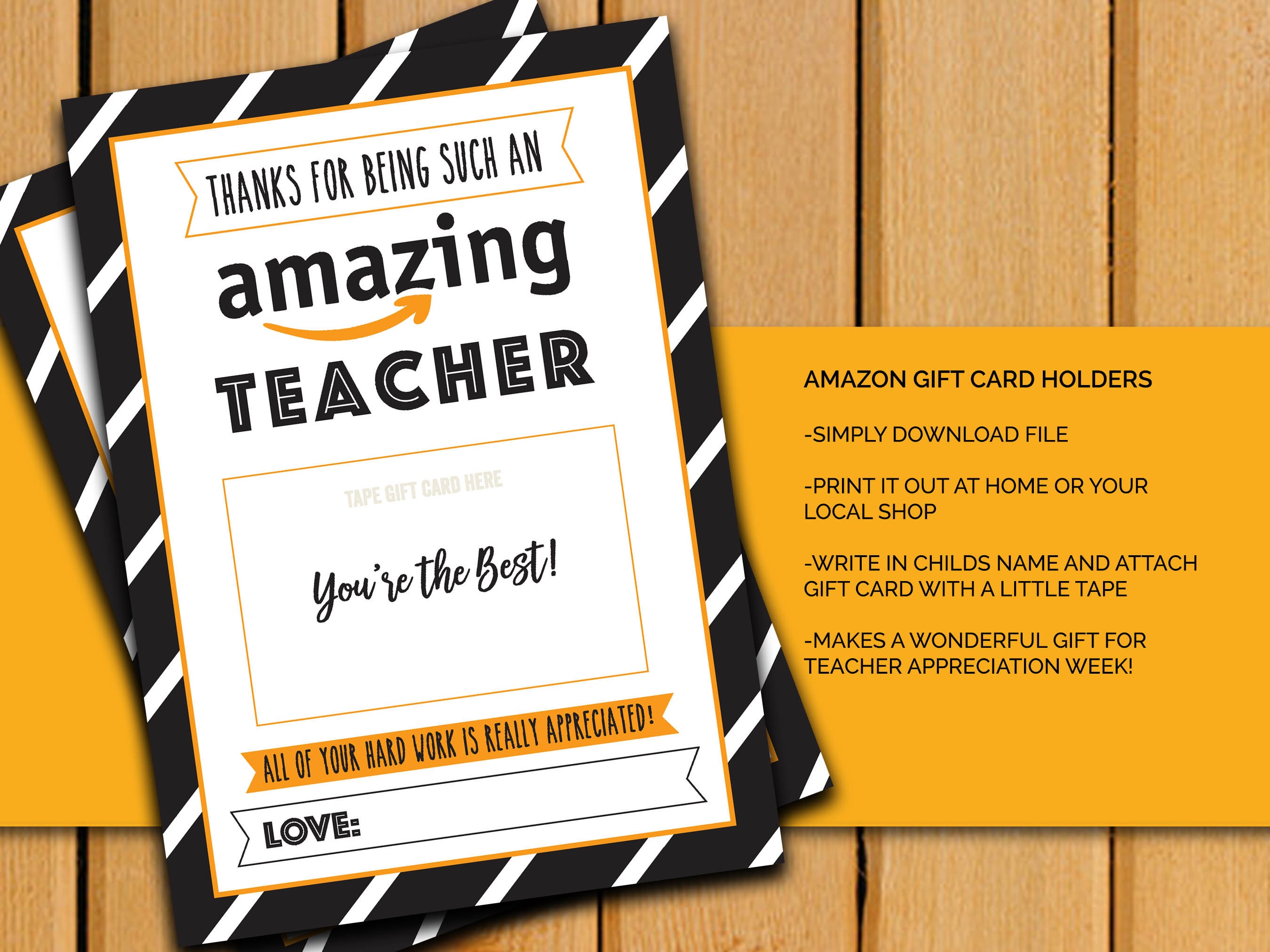 Amazon Gift Card Holder - Teacher Appreciation Week Gift - GC Holder PRINTABLE - Thank you Teacher Present