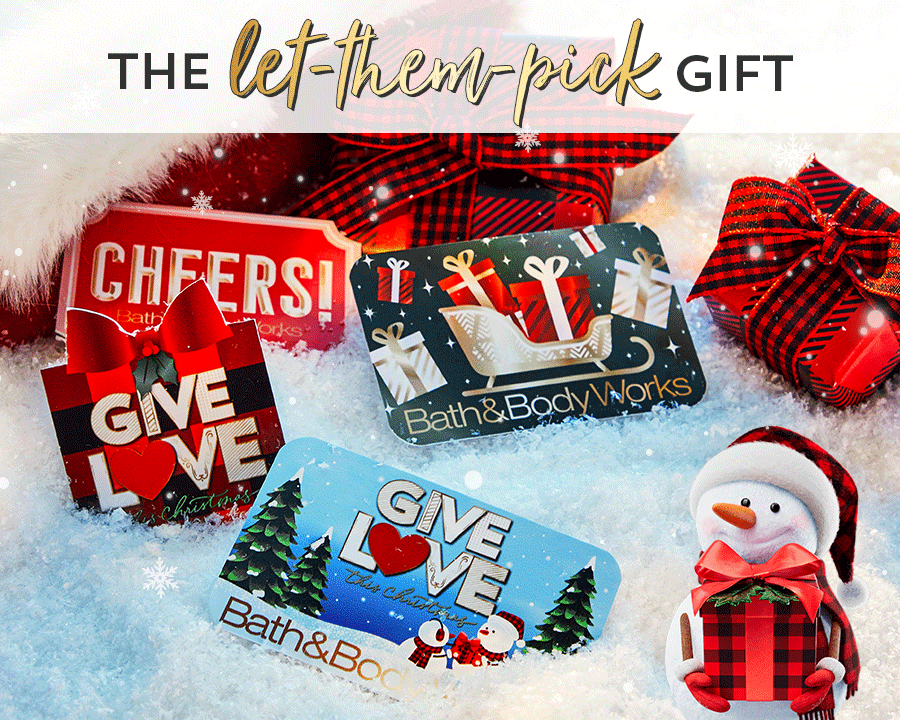 Bed Bath & Beyond Gift Card Balance | GiftCards.com Here's how to check the balance on your Bed Bath & Beyond gift card: Visit any Bed Bath & Beyond store and ask a cashier to check the balance for you. Check your balance online here by clicking on the "Check Your Gift Card Balance" link at the bottom of the page. Call Bed Bath & Beyond at 1-800-462-3966. Bath & Body Works - Gifting Made Easy - Buy Gift Cards, Experience ... As one of the world's leading speciality retailers in fragrance for home and body, Bath & Body Works offers high quality aromatic products. Find an extensive array of products such as fresh fragrances, soothing skin care, bath supplies and gift sets with Bath & Body Works gift cards - perfect to suit everyone for any occasion. Gifts - Bath & Body Works Bath & Body Works is here to help you find the perfect gift, every time. Gifts for her, gifts for him -- we've got your gifting bases covered! Start by browsing our DIY gift baskets and fragrance gift sets. And while you're in a gift-giving mood, feel free to pick up a goodie or three for yourself, too. Last but not least, shop gifts for men ... Find Bath And Body Works Gift Card Deals - Moola Canada Present your phone with the barcode or eGift Card number to an associate at checkout in any Bath & Body Works store in Canada. For details on how to find your eGift Card number in the Moola app, see our FAQ. Find deals on Bath and Body Works Gift Card now, Download Moola now, 4.9 star rating, 109,000 total downloads, Brand, Additional information,