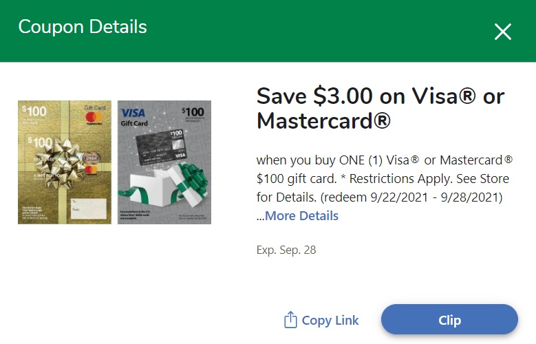 Domino's eGift Cards | $15 to $100 | Kroger Gift Cards Gifting a Kroger gift card couldn't be simpler. Decide on an amount between $15 and $100 and select the type of gift card - either an eGift card for instant email delivery, or a physical card. From there, enter your recipient's details and we'll do the rest. Treat their tastebuds, gift a Domino's gift card from Kroger today. Buy eGift Cards & Certificates | Kroger At Kroger, you can browse a wide range of eGift cards for some of the biggest brands in the world. We have more than 200 eGift cards to choose from. Select a gift card for everything from Apple to Xbox, Kohl's to Sephora, and let your recipient choose themselves the perfect gift, whether it's for a birthday, Christmas or just a little treat. Kroger.com: Save 5% on $25-$100 Mastercard & Visa Giftcards The $100 cards come with a $5.95 fee, so after the 5% discount it'll land up $100.95 for each card. You'll also currently earn 4x fuel points on the purchase. You won't get the grocery multiplier on the credit card for Kroger.com gift card purchases. Kroger: $100 Fee-Free Visa/MC Gift Card Deal - Doctor Of Credit Direct Link (sort by Gift Cards) Buy one $100 Visa or MasterCard gift card with no activation fee. Find the coupon in your Kroger account. Should be the same at Kroger-affiliated stores. "Limit one coupon per transaction per day." The terms indicate that this deal can be done one time per day.