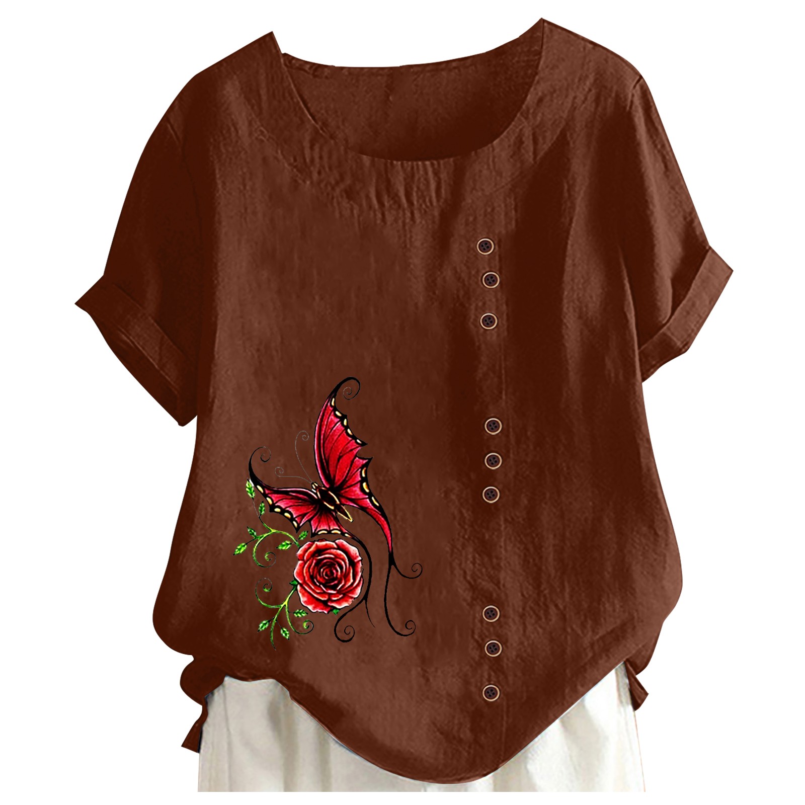 HSMQHJWE Cato Fashions The Plus Size Womens Summer Casual T Shirts O Neck Rolled Sleeve Loose Side Split Tops Formal Blouse