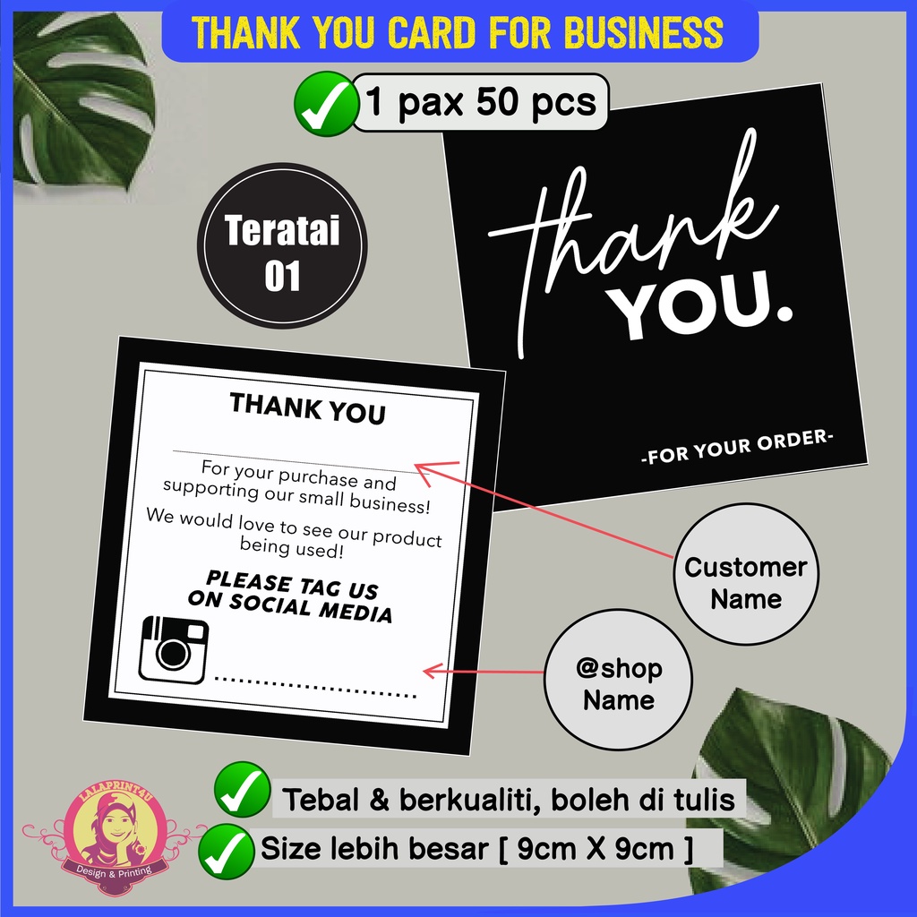 50pcs [9cm x 9cm] THANK YOU CARD for Business Marketing | Kad Ucapan Wish Card Greeting Card Gift Card Printing Tag